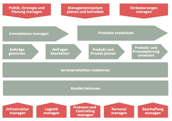 - Für jeden Prozess wird genau definiert, was dessen In- und Outputs sind und von welchen internen Kunden- bzw. Lieferantenprozessen sie stammen.